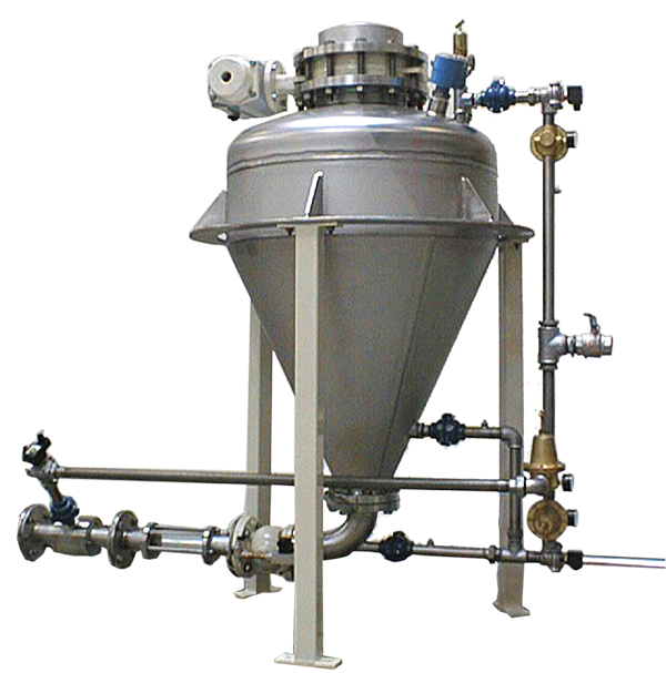 進料閥和排氣閥打(dǎ)開,物料自由落入泵體內,料滿後,料位(wèi)計發出信號,進料閥和排(pái)氣閥自動(dòng)關閉,完成(chéng)進料過程;